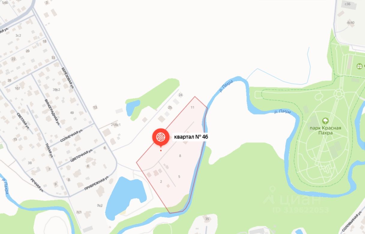 Адрес объекта отсутствует на Яндекс картах, поэтому указан ближайший к участку объект. Точный адрес: город Москва, вн.тер.г. муниципальный округ Краснопахорский, квартал 46, земельный участок 15. Кадастровый номер: 77:22:0020118:1805