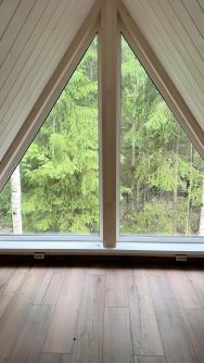 Площадь дома по нижнему этажу 64 кв.м., две спальни: одна на первом этаже и вторая с большим панорамным окном на втором, второй свет, высокие потолки, отличные большие оконные группы, готовый с/у, кухня, техническое помещение с отдельным входом, кондиционер, водонагреватель, радиаторы, теплые полы.