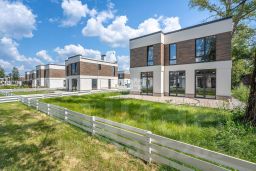 Дом выполнен из качественных строительных материалов. Застройка поселка ведется современными домами в минималистичном стиле, с эргономичными и функциональными планировками.