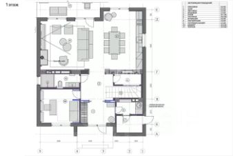 1 этаж: прихожая, гостевая спальня, санузел, гостиная-кухня, гордеробная, постирочная, котельная;