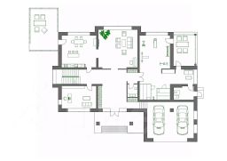 Основные достоинства особняка: каминный зал со вторым светом и панорамными окнами во всю стену; спа-зона с сауной, хаммамом, комнатой отдыха с террасой; столовая с террасой с камином/мангалом.