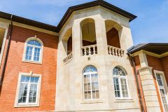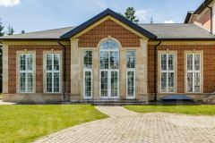 В доме предусмотрено: несколько спален, с/у, бассейн, 4 м/м, гостиная с камином, панорамные окна, терраса с выходом во внутренний двор, зоны для персонала, дополнительные помещения, цокольный этаж.