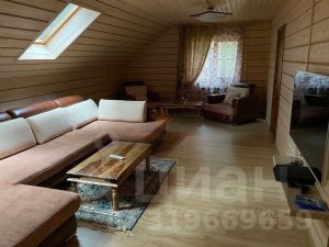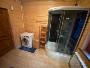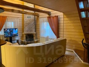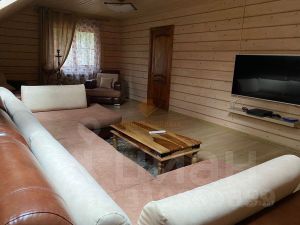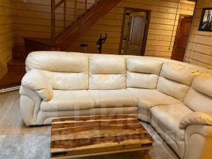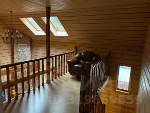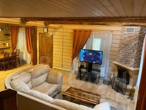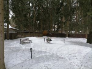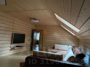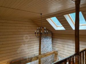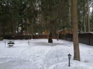 Дом построен из качественных материалов: ленточный монолитный фундамент, стены из оцилиндрованного бревна с облицовкой из блокхауса, стеклопакеты и мягкая кровля. Участок огорожен профлистом, на нем растут лесные деревья, что создает атмосферу уединения и спокойствия.