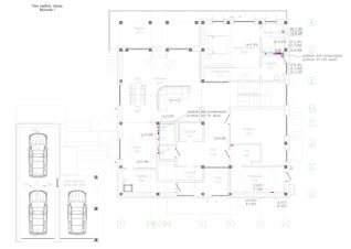 Просторный дом общей площадью 723 м². Дом для гостей или персонала общей площадью 130 м². Баня с комнатой отдыха, летней кухней и верандой с выходом на террасу общей площадью 147 м² на участке в 32 сотки, который расположен в 76 километрах от МКАД по Можайскому шоссе.