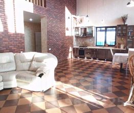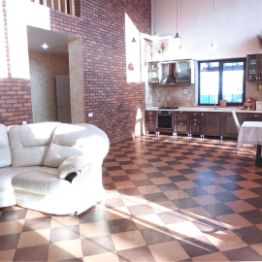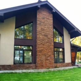 Монолитный дом из газоблока с наружным утеплением, фасад- натуральный камень, шикарный, просторный зал со вторым светом, потолок - лиственница, теплые полы.