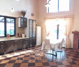 Изюминка дома - просторная кухня- гостиная с каминным залом со вторым светом, предающим пространству ощущение простора , наполненности помещения светом, большим объемом воздуха, позволяющим реализовать самые смелые дизайнерские идеи и наделяющим зал первого этажа несомненно эффектным внешним видом.