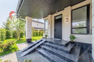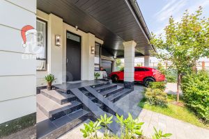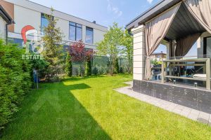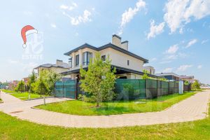 На участке 6 соток сделан ландшафтный дизайн, высажены декоративные кустарники и растения, выстелен газон. Установлена дренажная система, автополив, освещение. Участок полностью огорожен, ворота с электроприводом. Отличное расположение относительно других домов, всего с двух сторон соседи.