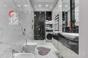 Двухэтажный дом построен по индивидуальному проекту, отделан облицовачным белоснежным камнем. В отделке дома использованы дорогостоящие материалы, интерьер выполнен в светлых тонах. Есть вся необходимая мебель и встроенная техника. В доме четыре спальни, одна из них расположена на первом этаже. Прекрасным дополнением к дому - это наличие террасы, где можно проводить время теплыми летними днями в кругу семьи.