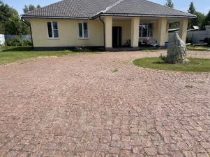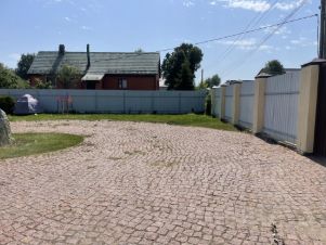 Интернет, электричество по деревенскому тарифу. На улице освещение, водопровод уличный по периметру дома. Въезд весь в брусчатке с круговым движением.