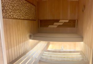 1 этаж: холл, кухня-столовая- гостиная с выходом на патио, спальня, гардеробная, санузел, котельная, теплый гараж, сауна с комнатой отдыха и выходом в сад.
