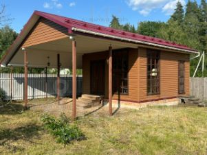 Состоит из двух комнат, чердака и террасы. Подойдёт для проживания или отдыха в любое время года.