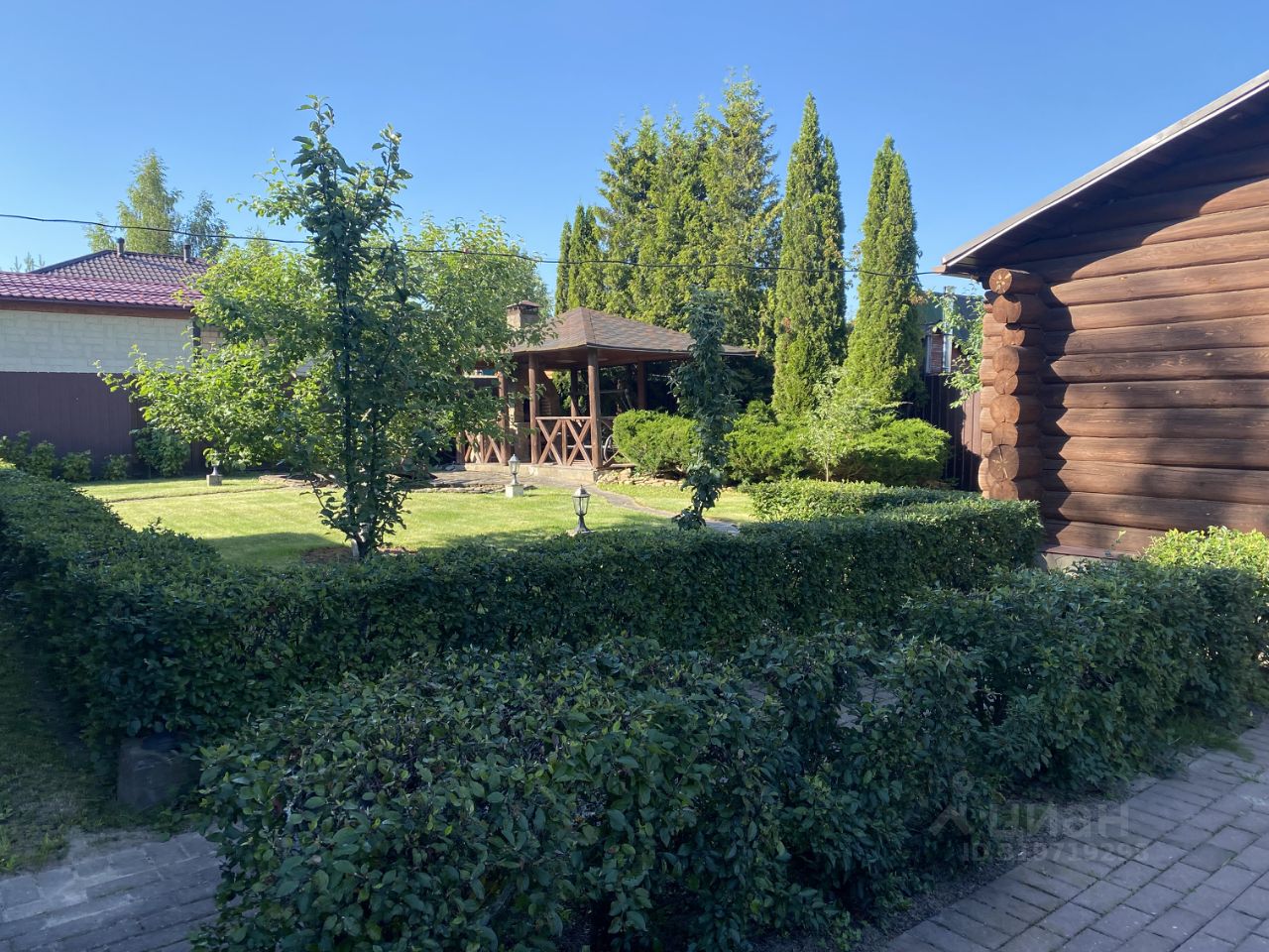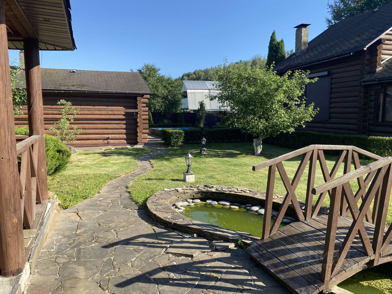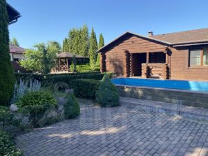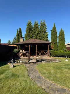 Участок 9 соток правильной формы с ландшафтным дизайном и бассейном, сделан дренаж. На участке: основной дом; гостевой дом с баней; беседка ( зона барбекю).