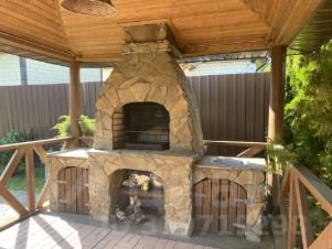 Гостевой дом (80 кв.м.) с баней : кухня-гостинная с камином, спальня, санузел с душем , баня.