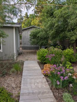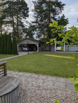 Благоустроенный сад с вековыми соснами, автополив, навес на 2е авто, отдельностоящая мастерская.