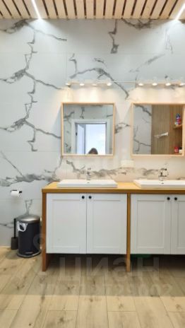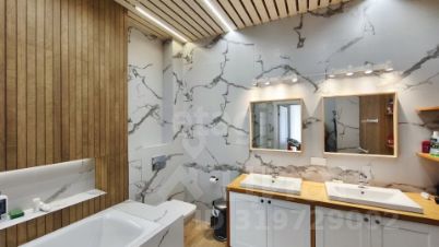 * Просторный санузел с ванной и двумя раковинами.