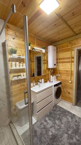 Электрическое отопление, водоснабжение от скважины, канализация — септик. Доступ к интернету через Wi-Fi. Техника по договоренности,кроме ( холодильника,посудомоечной и стиральной машины,они входят в счет) Участок площадью 10 соток расположен в экологически чистом районе,вокруг лесной массив. Настоящая жемчужина для ценителей тихого и спокойного отдыха! Грибное место, рядом также имеется пруд для купания и рыбалки.