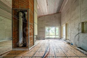 В доме выполнена отделка whitbox, установлен газовый котел udrus, сделана разводка электрики, установлено три дровяных камина