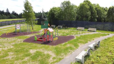 Общественная зона отдыха: площадка для стритбола, воркаут для занятий спортом, скамейки для отдыха, детские песочный дворик и спортивная площадка