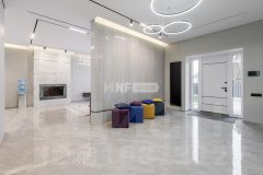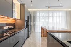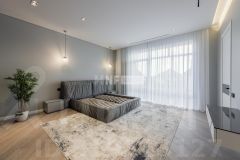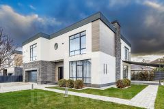 В доме панорамное остекление и высокие потолки, что создает много света и воздуха. В процессе ремонта были использованы современные отделочные материалы, элементы света и декора, на первом этаже выложен широкоформатный керамогранит. Второй этаж - натуральная паркетная доска - шпон дуба. В доме обустроена входная группа дверной проем 1700 * 2600, крыльцо выложено гранитом с подогревом. Установлены прочные межкомнатные эмалированные двери h -2300 с дизайнерской стеклянной вставкой в стилистике дома + черный алюминиевый профиль пр. UNION. В доме выполнено современное освещение от ведущих производителей из каталогов 2023-2024 года. Установлены магнитные трековые системы, что позволяет создавать комфортную атмосферу в комнате добавлять или менять принцип освещения нужных элементов декора и степень освещения в целом.