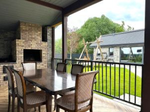 - огромную террасу с "мягкими окнами" и каменной мангальной зоной.