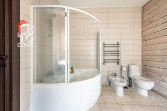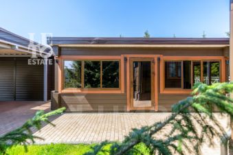 Дополнительно на участке есть гостевой дом 84 кв.м., где можно разместить гостей, а также провести время в бане из кедра или комнате отдыха с отдельным выходом на участок. Для удобства в доме есть своя кухня и санузел с душевой.
