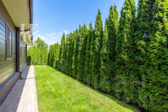 Участок 13 соток полностью благоустроен и утопает в зелени. Правильная планировка на участке оставляет свободное место для времяпрепровождения на улице. По периметру высажены большие туи, что делает участок приватным. Большие ели дополняют ландшафт. Для поддержания растений в необходимых условиях установлен автополив. На придомовой территории организована большая открытая парковка. Установлены ворота с электроприводом для комфортного доступа на участок.