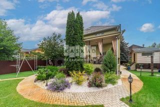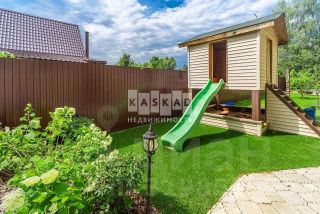 На участке выполнен ландшафтный дизайн с автополивом. Есть детский домик с горкой и песочницей, спортивная площадка, место под каркасный бассейн, лаконичные грядки, большие качели и свободная зона с мягким газоном для активных игр. А также парковка на 2-3 автомобиля с дополнительными воротами.