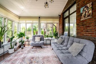 В домах: 5 спален, 4 санузла, 3 гардеробные, 2 кухни, 2 гостиные-столовые, баня, зимний сад. Качественное строительство — красный глиняный кирпич, фасад из бельгийского кирпича Wienerberger, высота потолков до 5 метров.