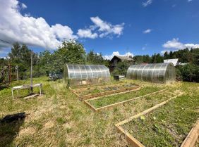 Участок правильной формы площадью 6 соток огорожен забором. На участке есть две теплицы.