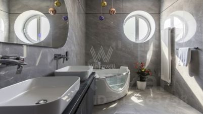 Центральным элементом коттеджа стал просторный холл с мраморным слэбом, уютная гостиная с дровяным камином Astov, отделанным полупрозрачным ониксом, и кухня-столовая с островом и гарнитуром Giulia Novars. Особого внимания заслуживает спа-зона с сауной, оборудованной автоматической системой управления и панно из гималайской соли. Для комфортного проживания предусмотрены 4 спальни, кабинет и вместительные гардеробные. На террасе можно организовать зону для барбекю и отдыха на свежем воздухе. Для автомобилей предусмотрен двухместный гараж. Участок с ухоженным газоном, декоративными кустарниками, аккуратными дорожками и уличным освещением создает законченный образ элегантной резиденции.
