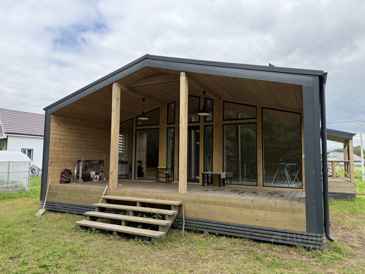 * Снаружи дом отделан деревом и профлистом цвета серый графит. Внутренняя отделка массив дерева.