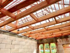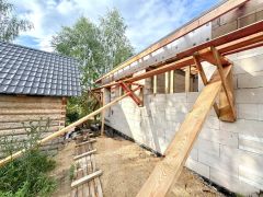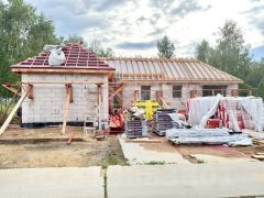 5. Кровля: гибкая черепица, утепленная 200 мм, софиты и водосточная система (в процессе завершения).