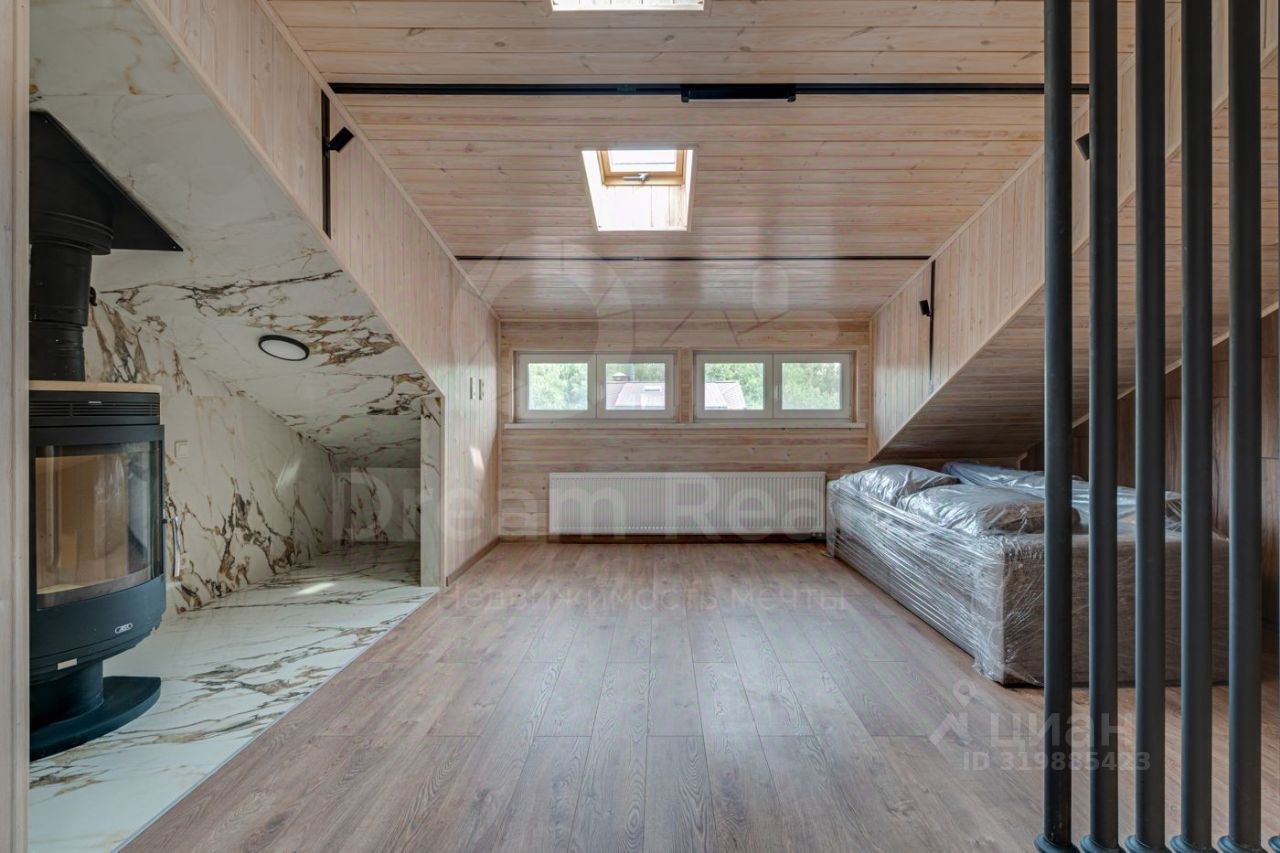 Мансарда — зона совместного отдыха с каминной зоной, кухня, санузел.