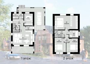 2 этаж: 3 спальни, гардероб, 2 с/у
