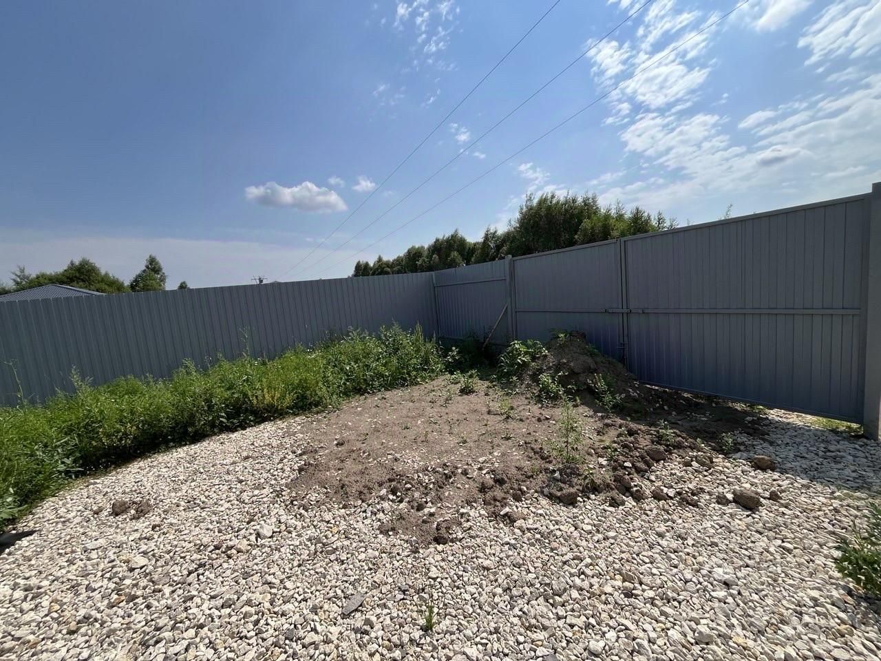 Участок огорожен забором ( профлист со всех сторон), отсыпана площадка под автомобиль.