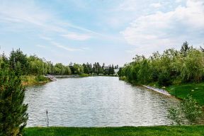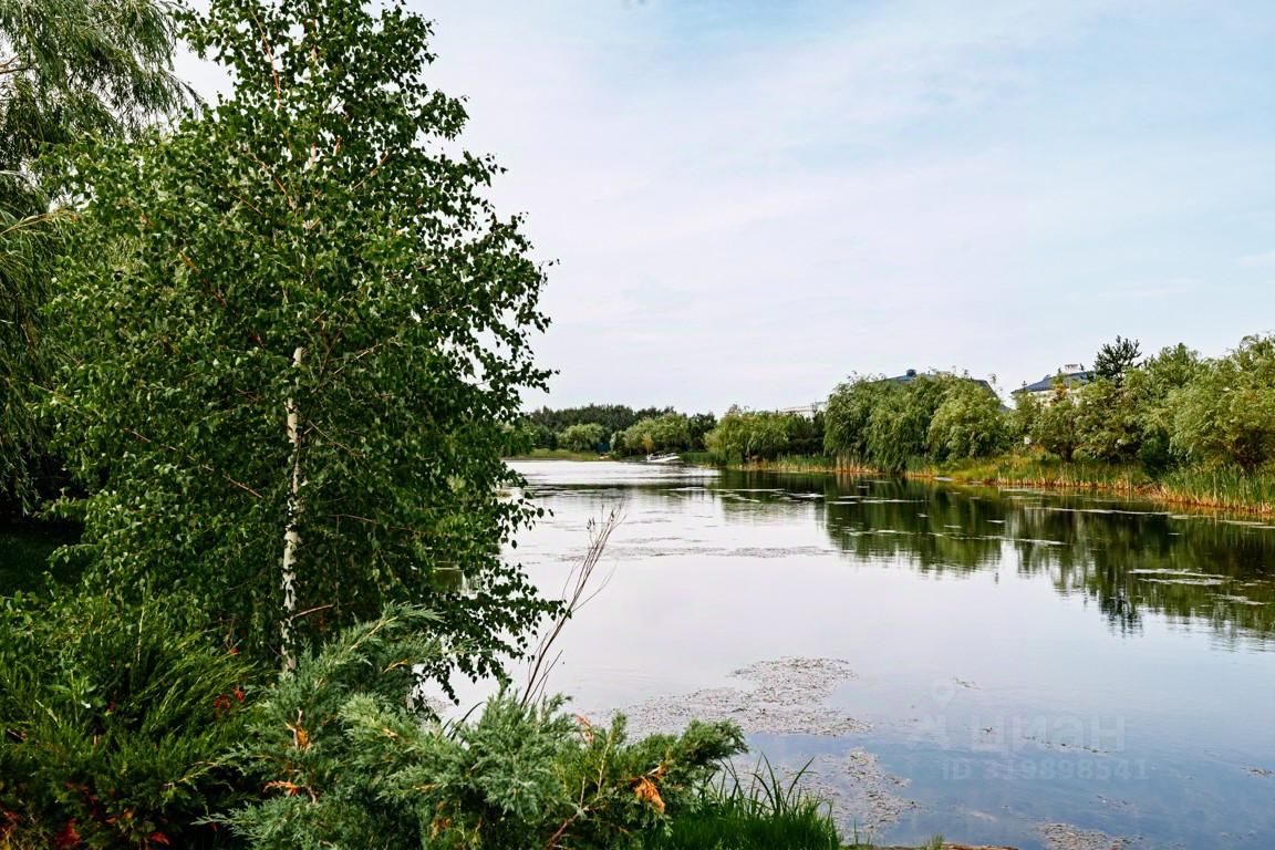 На участке с персональным доступом к озеру выполнен ЛАНДШАФТНЫЙ ДИЗАЙН, высажены деревья и кустарники, выстелен газон, выложены дорожки.