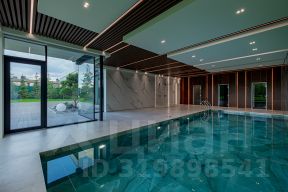 1 этаж: холл, гостиная с камином, вторым светом и выходом на террасу, столовая, кухня, СПА-зона (бассейн 10х4, сауна, хамам, душевая с с/у), гардеробная, 2 с/у, блок для персонала с тремя комнатами, кухней и с/у, гараж на 4 машиноместа, бойлерная, постирочная;