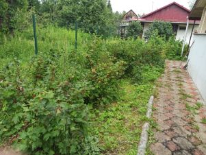 На участке из строений дом каркасный, баня, сарай. Коммуникации - свет, вода из колодца (гидроаккумулятор с реле давления + насос), отопление - твердотопливный котел с ТЭН, замкнутая система с насосом и радиаторами в доме, канализация (септик), газ по границе участка. Есть плодовые деревья и ягодные кустарники (яблони, смородина, малина и др.).