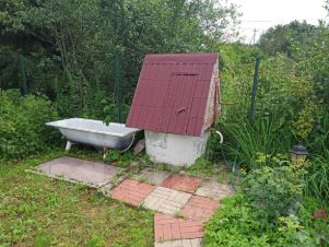 Участок ухоженный, сухой (поднят грунтом на 10-15 см), огорожен забором - фасад из профнастила, по другим сторонам сеткой. Есть площадка под стоянку машины из щебня. Тротуарная плитка от калитки к дому, к бане и колодцу. Собственник более 10 лет, все делалось своими руками, без обременений, документы на участок и дом имеются.