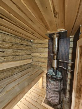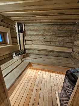 Венец участка - новая бревенчатая дом-баня, размером 6х6 м, на свайно-винтовом фундаменте. Не бита/не крашена, только дважды была на тест-драйве! Чугунная печь с огнем в каминной топке творит чудеса - греет парную, выдает шикарный пар и услаждает ваш взор картинами живого огня.