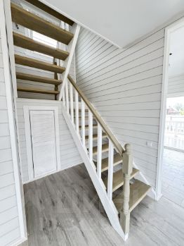 Установлена качественная Сантехника ( 1-ый этаж: Ванна, унитаз, раковина, зеркало; 2-ой этаж: Душевая кабина, унитаз, раковина, зеркало)