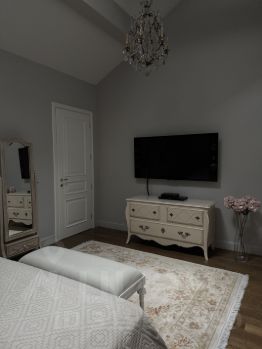 Французский дизайн, сочетающий три направления: классика, модерн и Ар-Деко. Мебиллированный Roche Bobois (Франция). В гостиной зоне люстра Swarovski от того же бренда. В прихожей, гостевом санузле, кабинете и мастер-спальне антикварные люстры. Все привезено из Франции. Гардеробные Komandor. TV Sony в каждой комнате. Кухня от итальянского бренда Scavolini, оборудованная техникой Miele. В кухонной зоне на стене фреска. Батареи Arbonia. Сантехника Villeroy & Bosh. Кондиционеры Panasonic. Паркет - дуб (натуральный). Высокие двери. В кабинете французский балкон. Мансардные окна Velux. Шумоизоляция. Фильтрационная система воды. Водонагреватель емкостной косвенного нагрева на 300л (немецкий).
