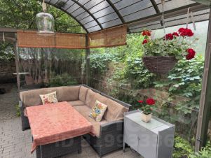 Продолжением французского дизайна следует уютная зона отдыха с садом, беседкой с плетеной мебелью и забором из старинного кирпича.