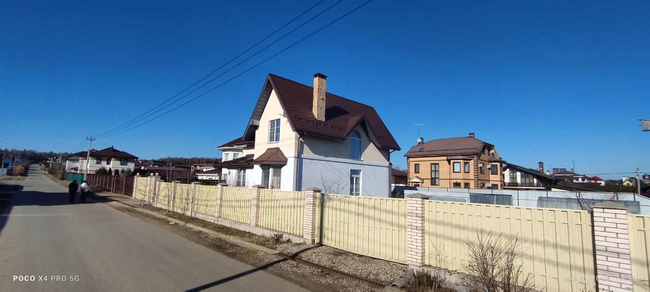 Участок 10 соток, правильной прямоугольной формы. На участке высажены плодовые и декоративные деревья, газон. Есть металлический гараж-ракушка для легкового авто и хозблок, дорожки и стоянка под авто выложены тротуарной плиткой, автоматические распашные ворота, на калитке домофон.