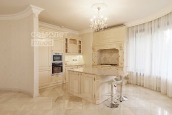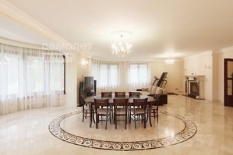 На первом этаже дома расположена просторная светлая гостиная с действующим камином, облицованным мрамором, в едином пространстве с кухней, оборудованной всей необходимой техникой, master-спальня с гардеробной и с/у, гостевая спальня, кабинет, гардеробная в прихожей, гостевой с/у, сауна с комнатой отдыха и душевой, хозяйственная комната. Высота потолков 3м. Из панорамных окон гостиной открывается вид на участок в перспективе и лесной массив.