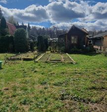 На участке хозблок для хранения инвентаря 10 кв.м, сантехнический блок: туалет и душевая кабина с бойлером 80л для ГОРЯЧЕЙ воды, место для парковки автомобиля, плодовые деревья и кусты (яблони, сливы, крыжовник, смородина), декоративные растения, грядки под огород.