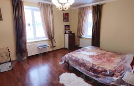В доме всего 7 комнат: гостиная, 5 спален, кабинет-библиотека, 1 гардеробная. На участке также находится беседка с зоной барбекю, крытый гараж и открытая стоянка под навесом для 4-х автомобилей. Въезд на территорию дома осуществляется через КПП.