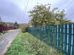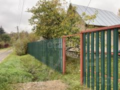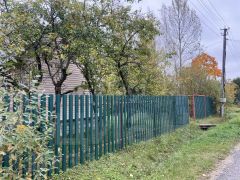 Участок 6 соток ровный, по сажены плодовые деревья и кустарники. С дороги огорожен штакетником.