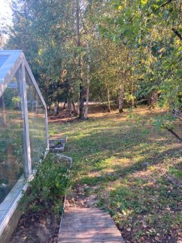Участок квадратной формы -частично с деревьями. Огорожен забором. Забор возведен на ленточном фундаменте. Одна сторона - без верхней части забора; продавец за свой счет его установит. На участке есть площадка под машины 8х8 метров, автоматические ворота (работают от пульта), к воротам проведен свет. Участок угловой, у леса. В данном СНТ можно прописаться. В той части, где деревья, растут грибы и земляника. Также на территории участка есть зимняя теплица, к которой проведено электричество. Участок продается как с этой теплицей, так и без. В случае покупки без теплицы, продавец уберет теплицу за свой счет, останется ленточный фундамент.