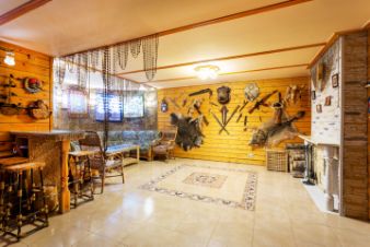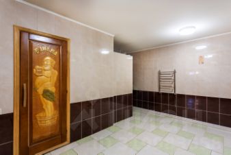 Цокольный этаж (потолки 3 м): Пространство используется для размещения гостей: Большой холл, русская баня с помещением для джакузи и с большой комнатой отдыха с камином.